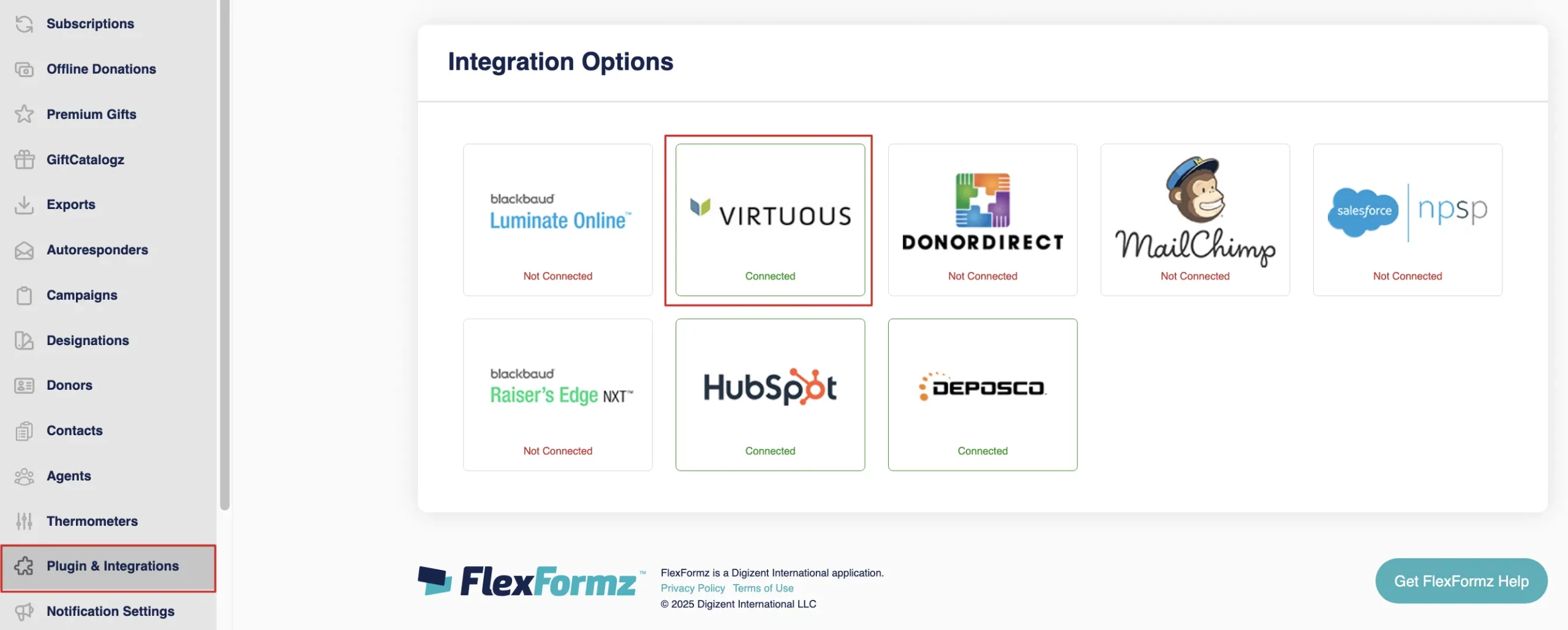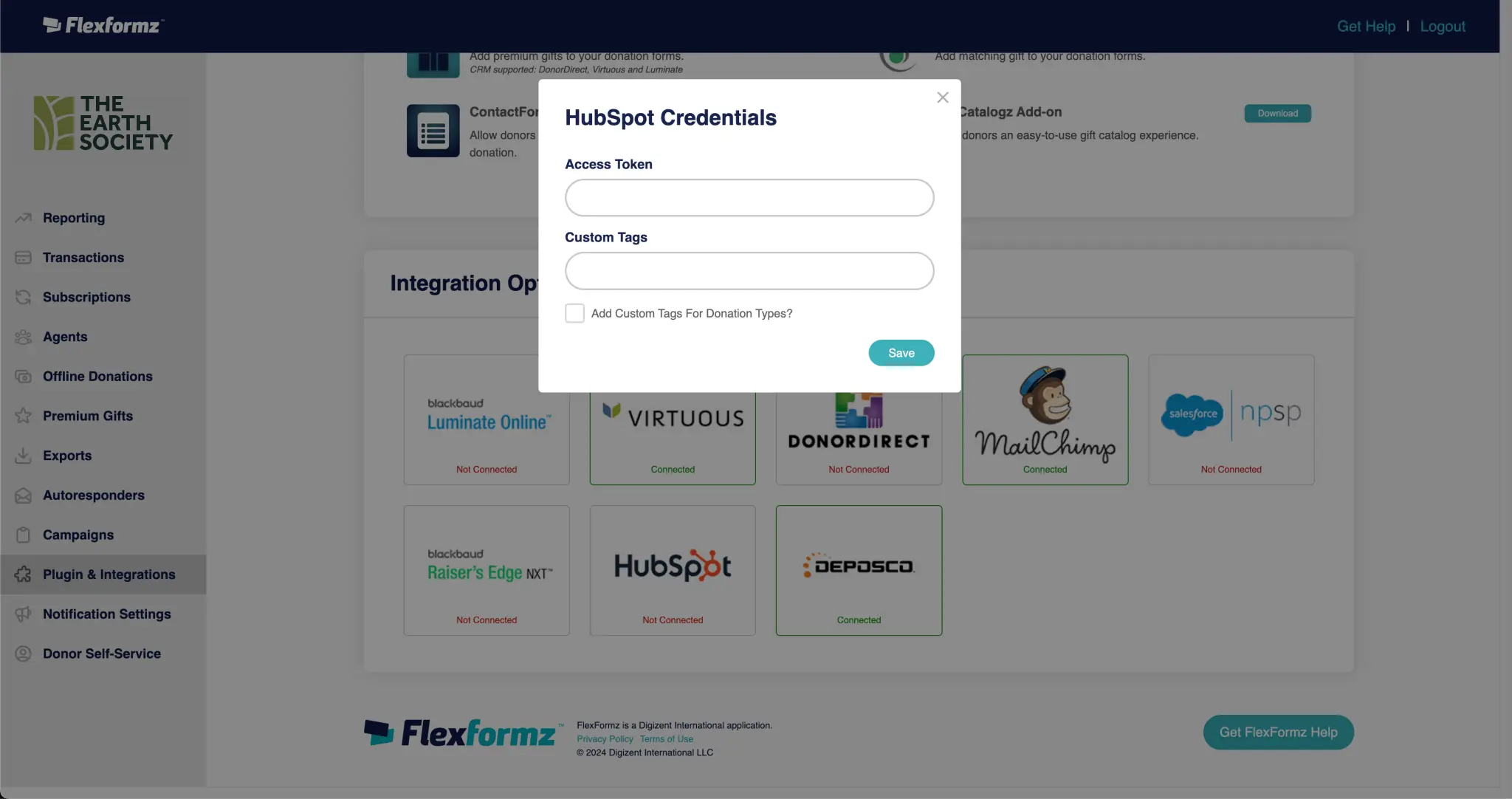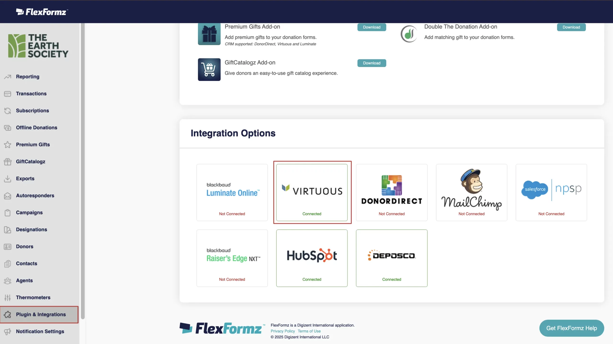 On the Portal Links Section, conveniently set your “Donate Now Link” to a FlexFormz Donation Form on your website. It will be displayed as a button on the sidebar of the Donor Self-Service portal.