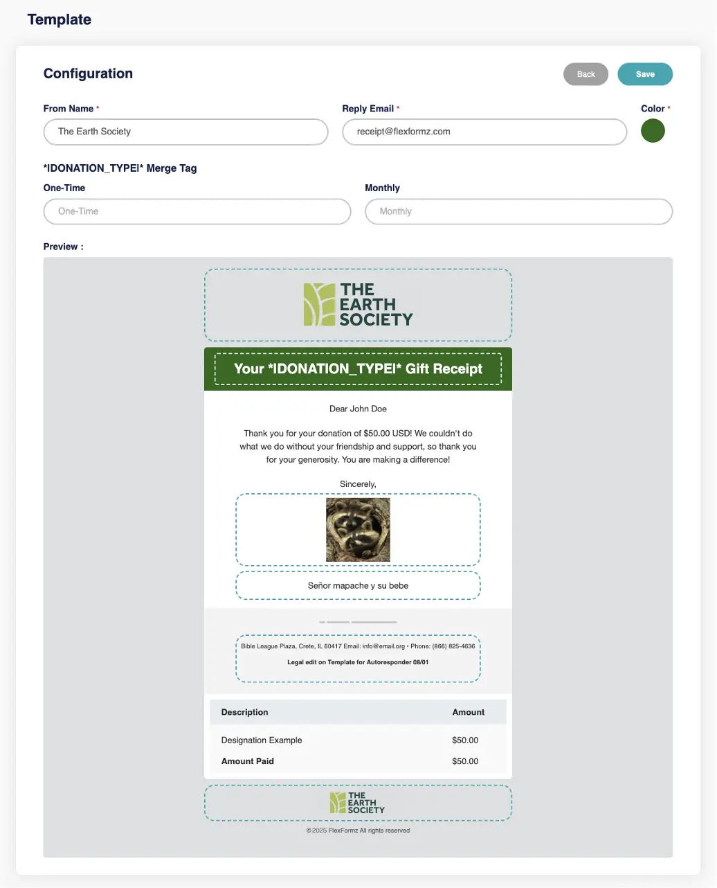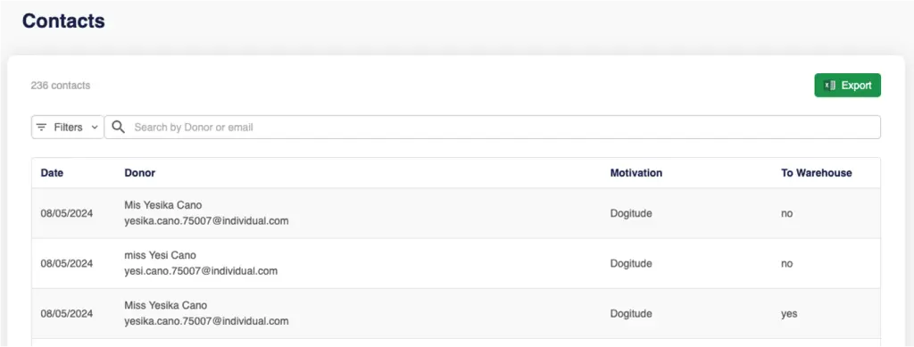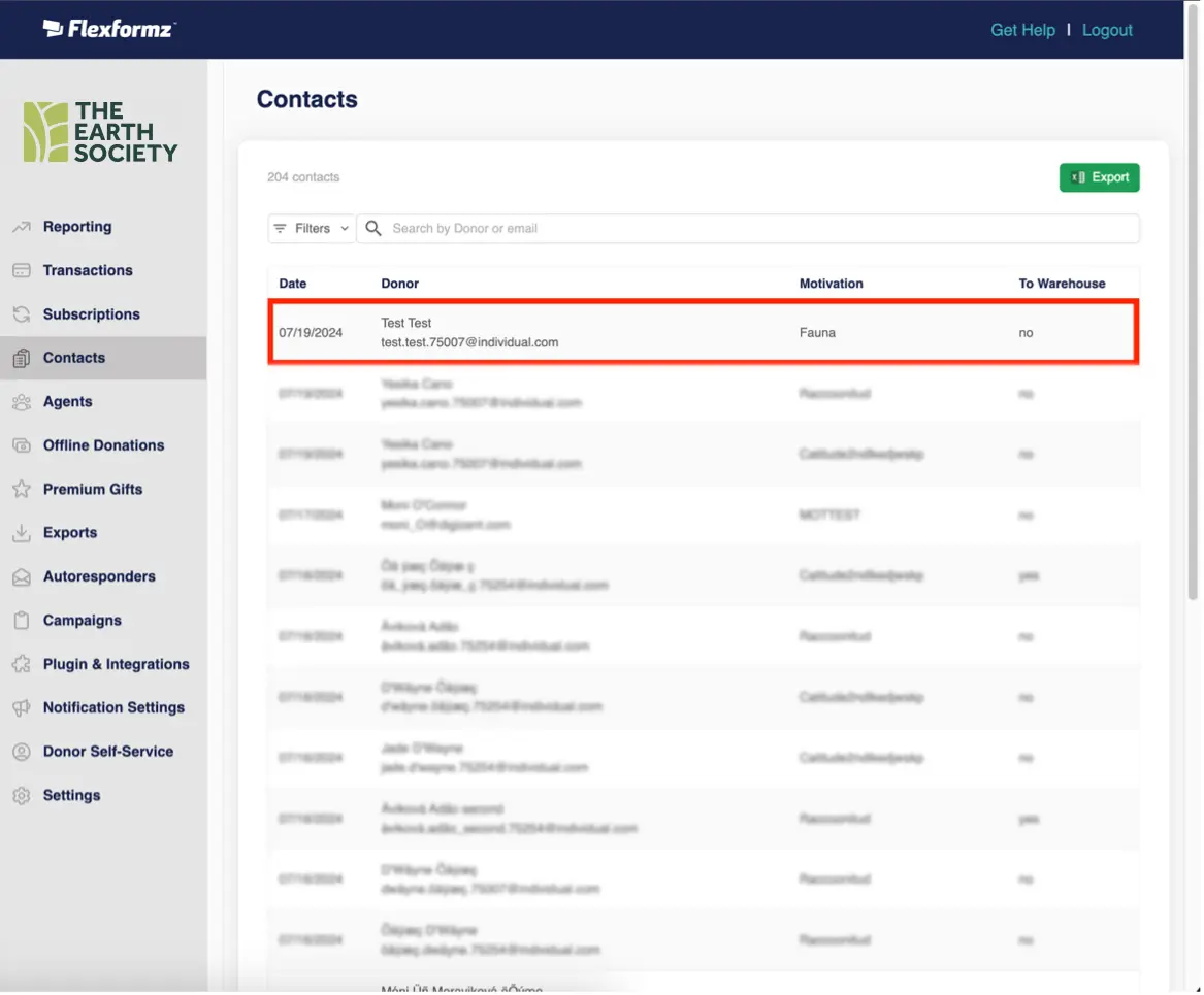 Contact information is sent and stored on the FlexFormz servers but can also be forwarded to the organizations using it, allowing for efficient and simple communication between organizations and donors, as well as potential donors.