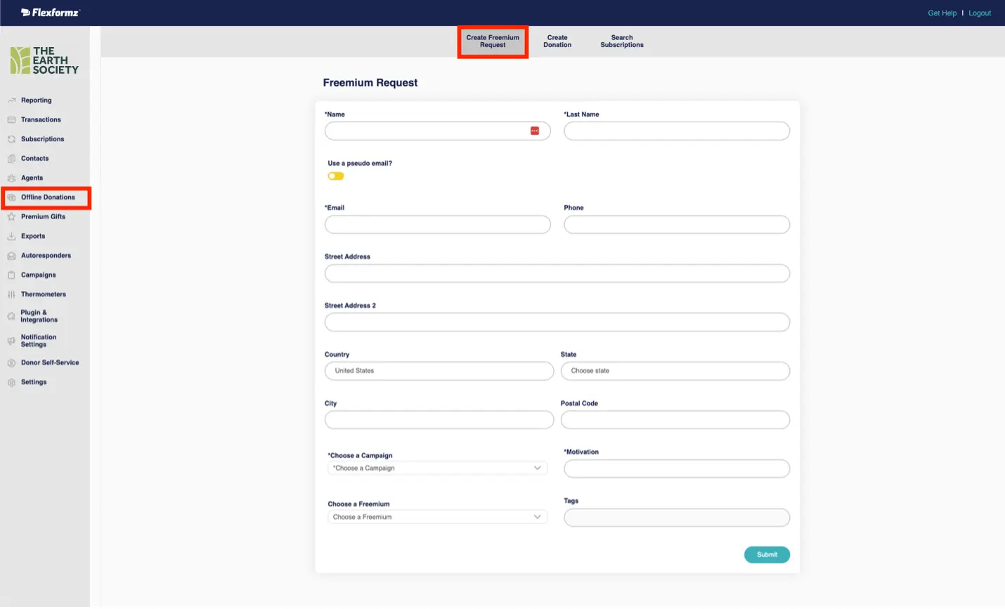- Manage Freemium requests: This permission allow the agent to collect potential donors information and send it to FlexFormz dashboard, here the agent have the option to send a physical gift to the potential donor depending on organization requirements.