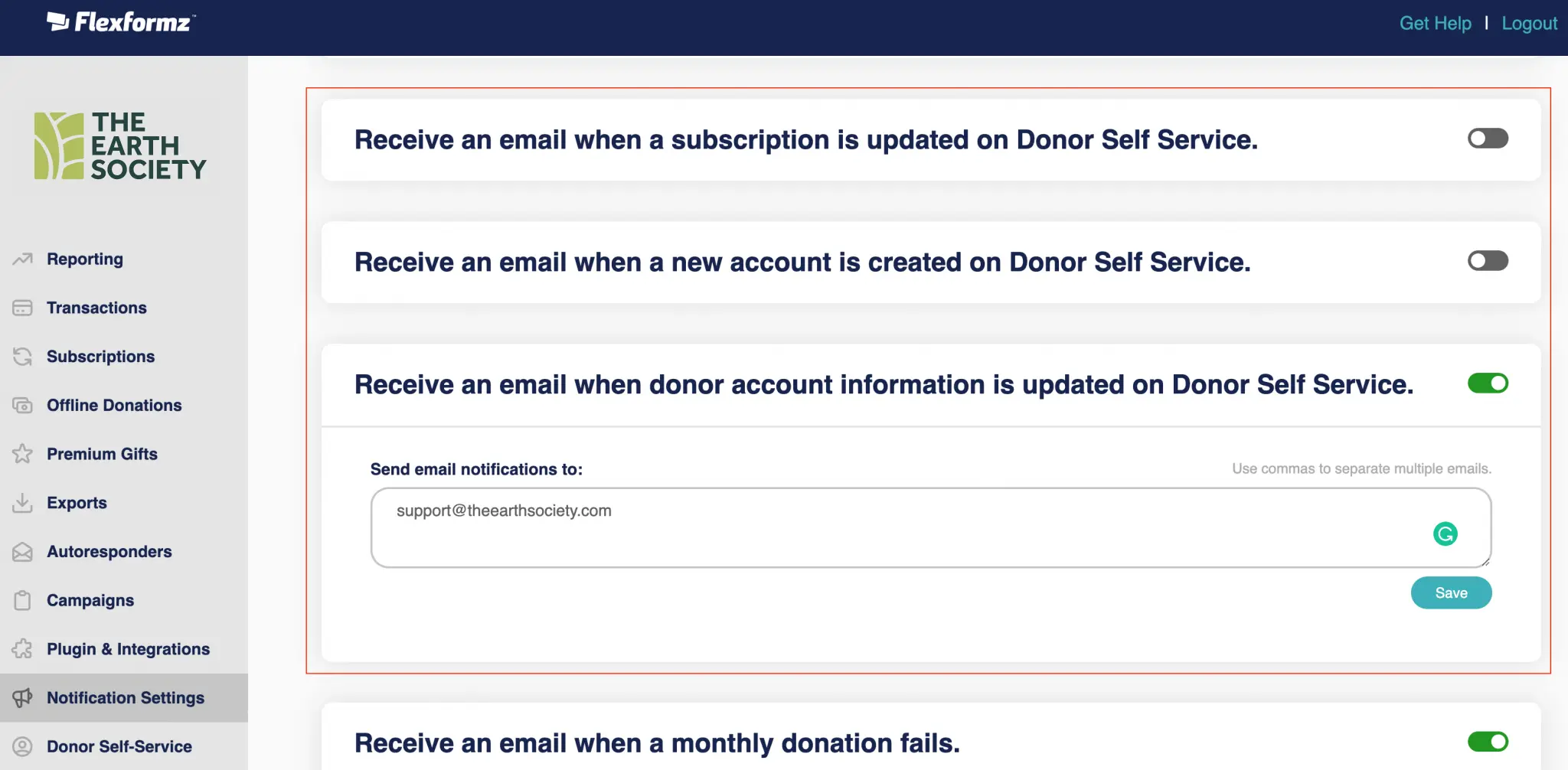 - Receive an email when a subscription is updated on Donor Self-Service.