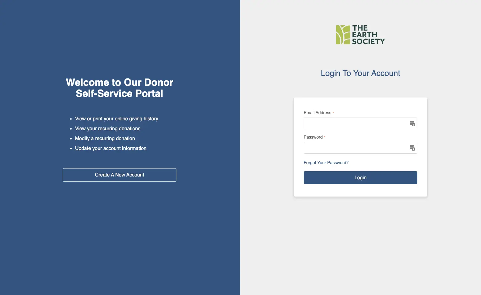 2. Donor Self-Service – Login Page
