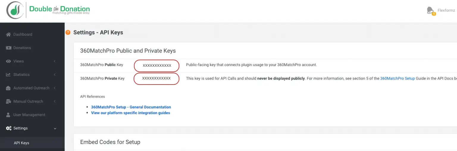 Make sure the Key Name matches the name in your Virtuous account.
