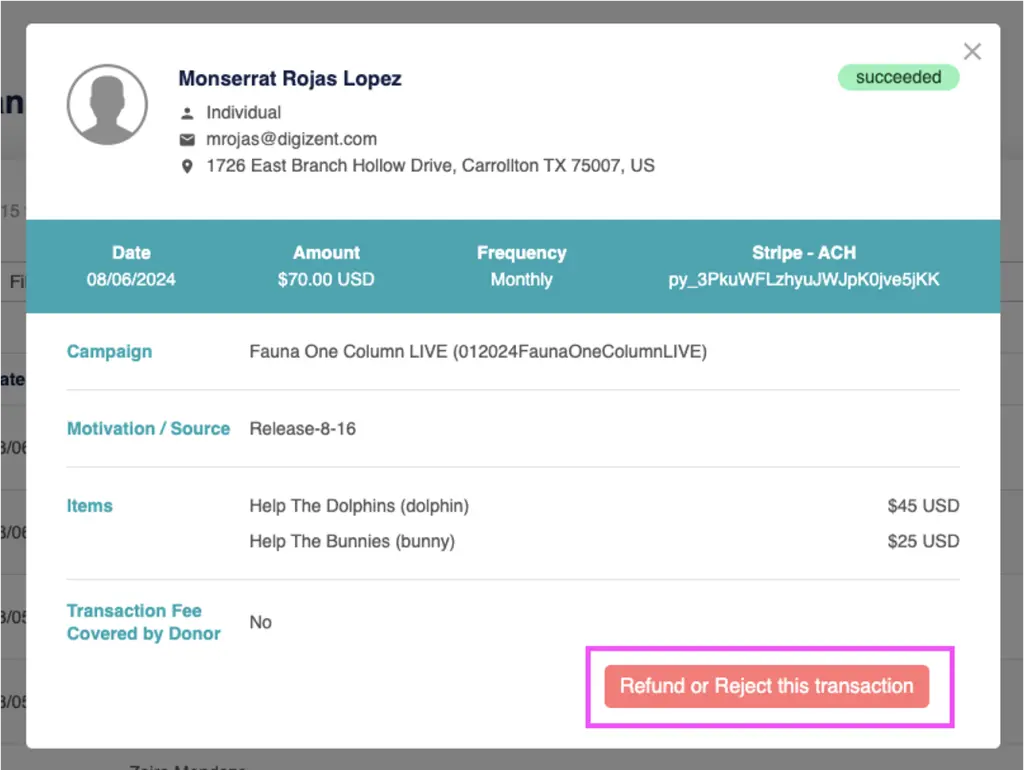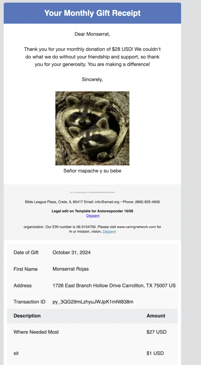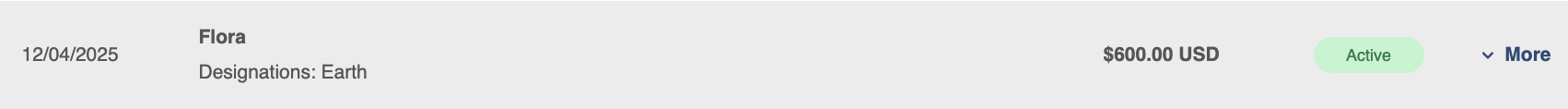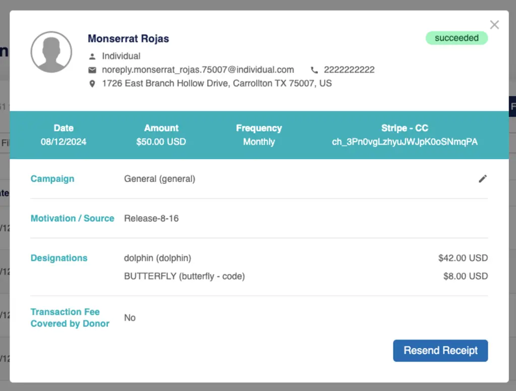 - Modify a recurring donation (amount and designations).