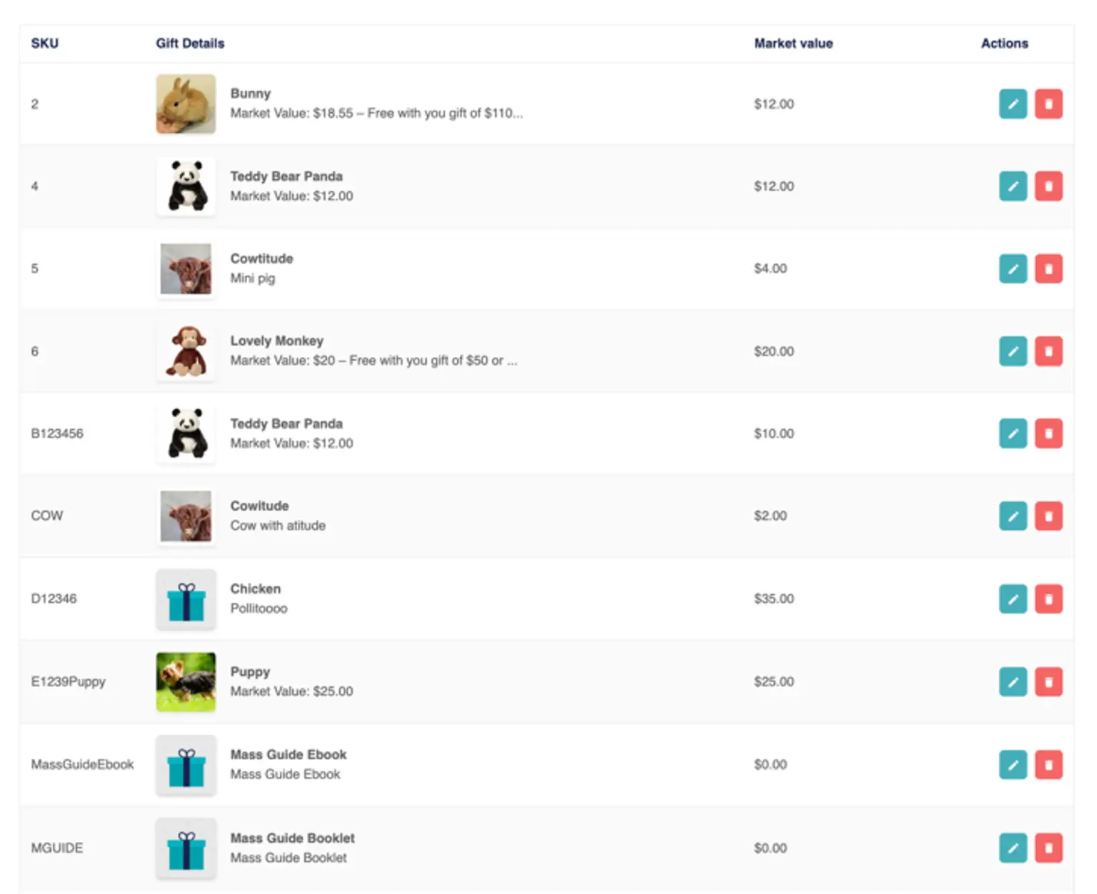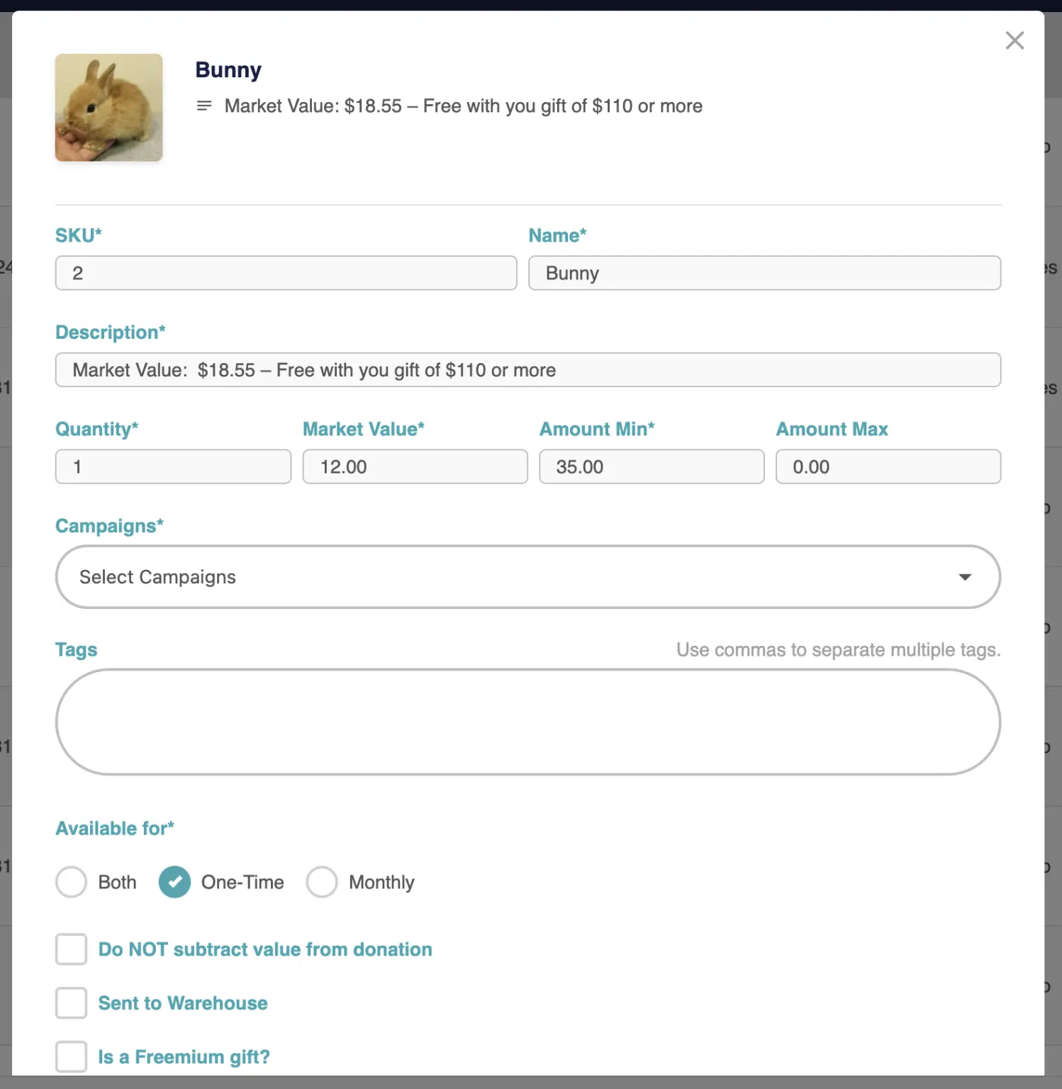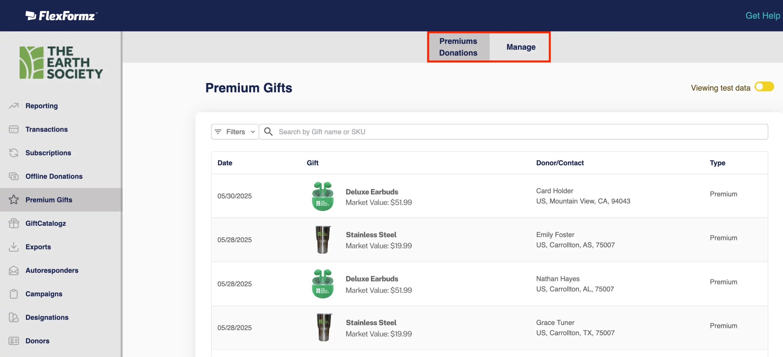 Users can view the premium donations and see information such as SKU, Gift Details, Market Value, etc.