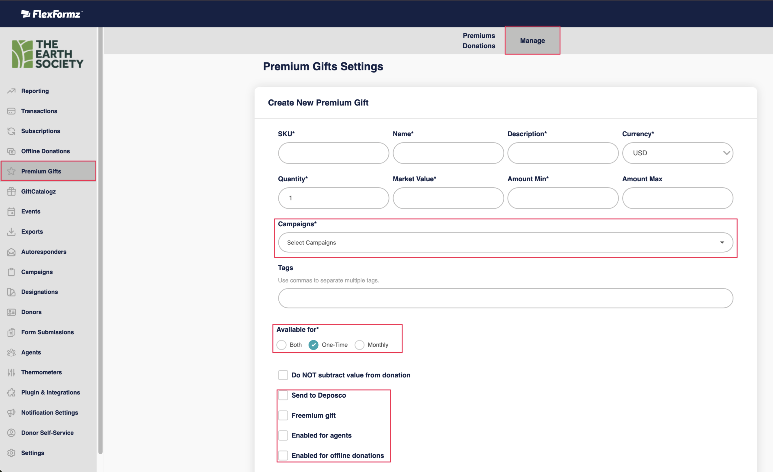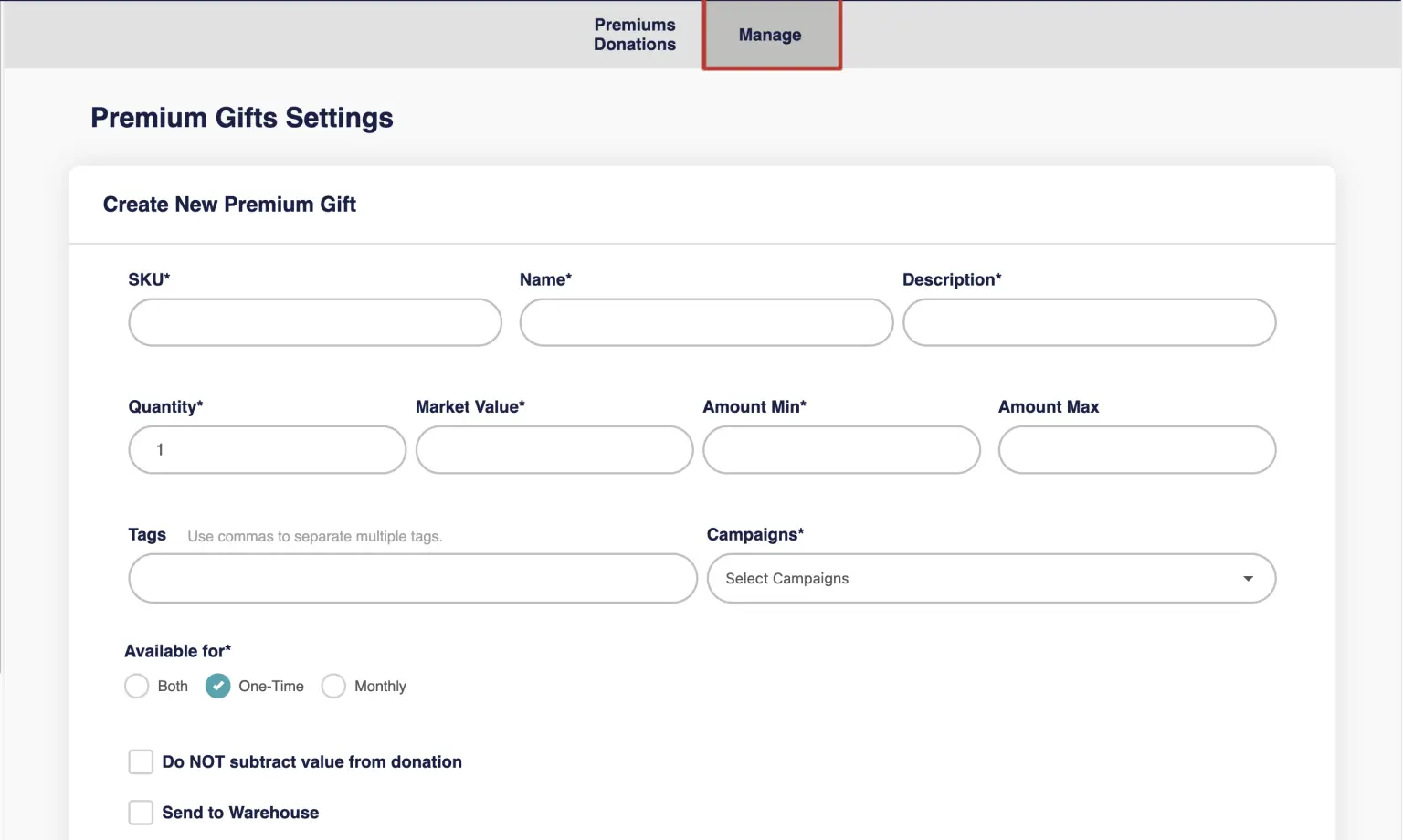 - Create a New Premium Gift:
