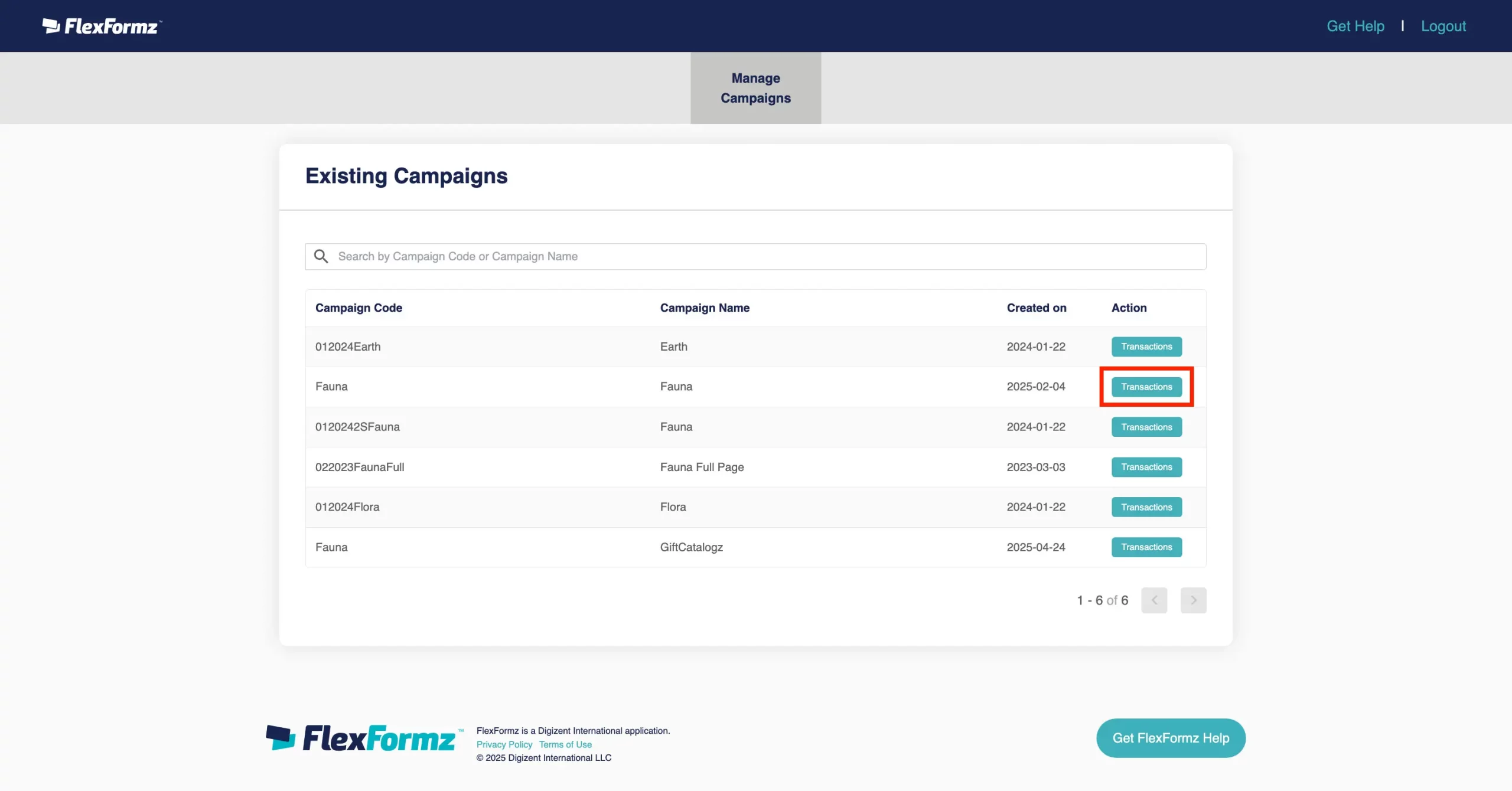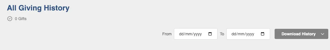 Next to the download button, the donor can search for a specific gift by the campaign name. The donor can also see how many gifts they have made and when was the last time they made a gift.