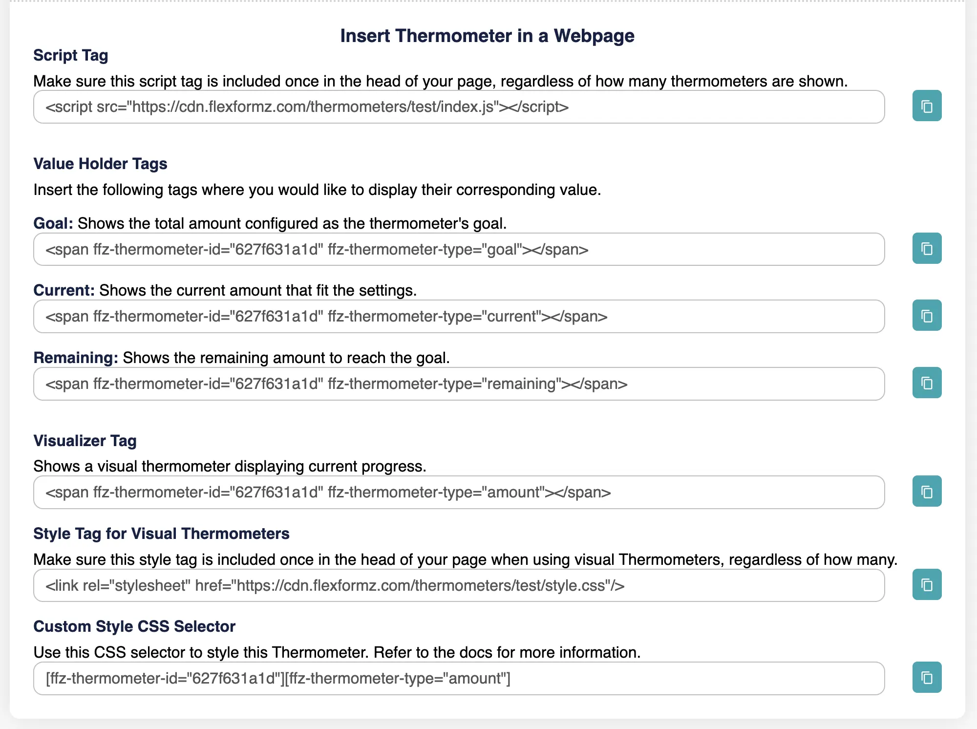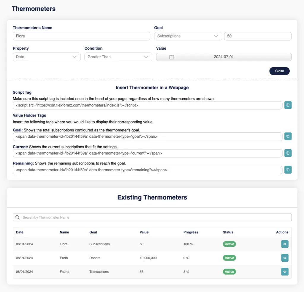 Users can View Thermometers status, configurations, and tags for inserting them on websites.