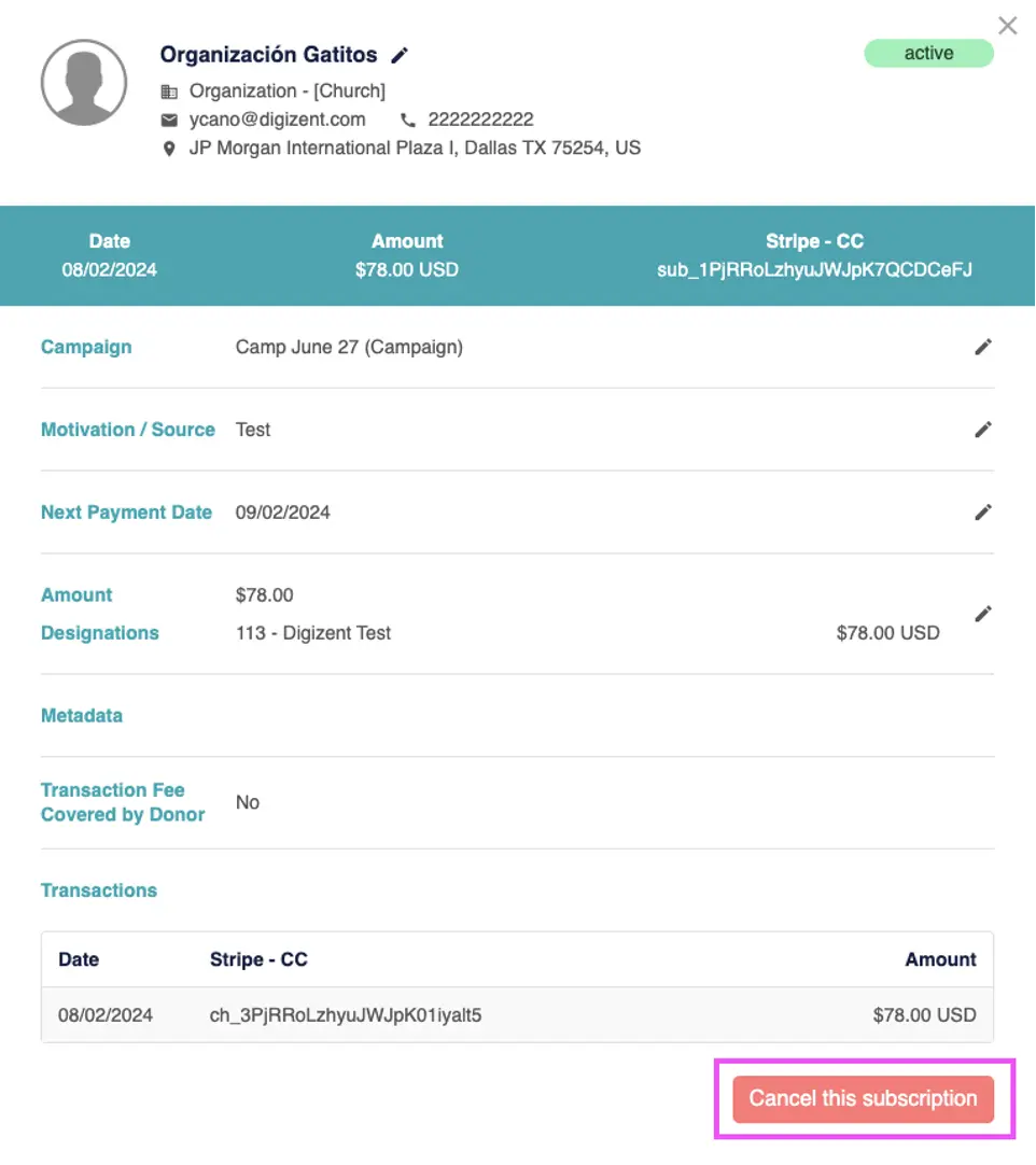 - View recurring donations.