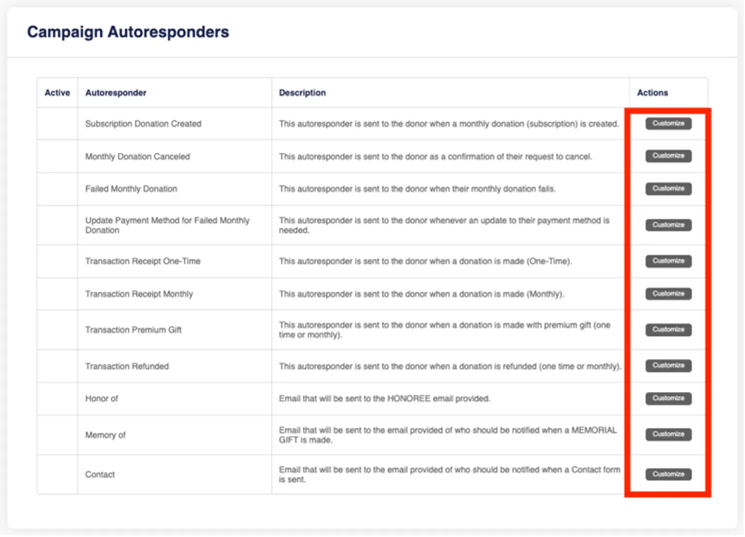 Users can view the general template and information on each type of autoresponder. This permission also activates the button “View” on Campaigns section.