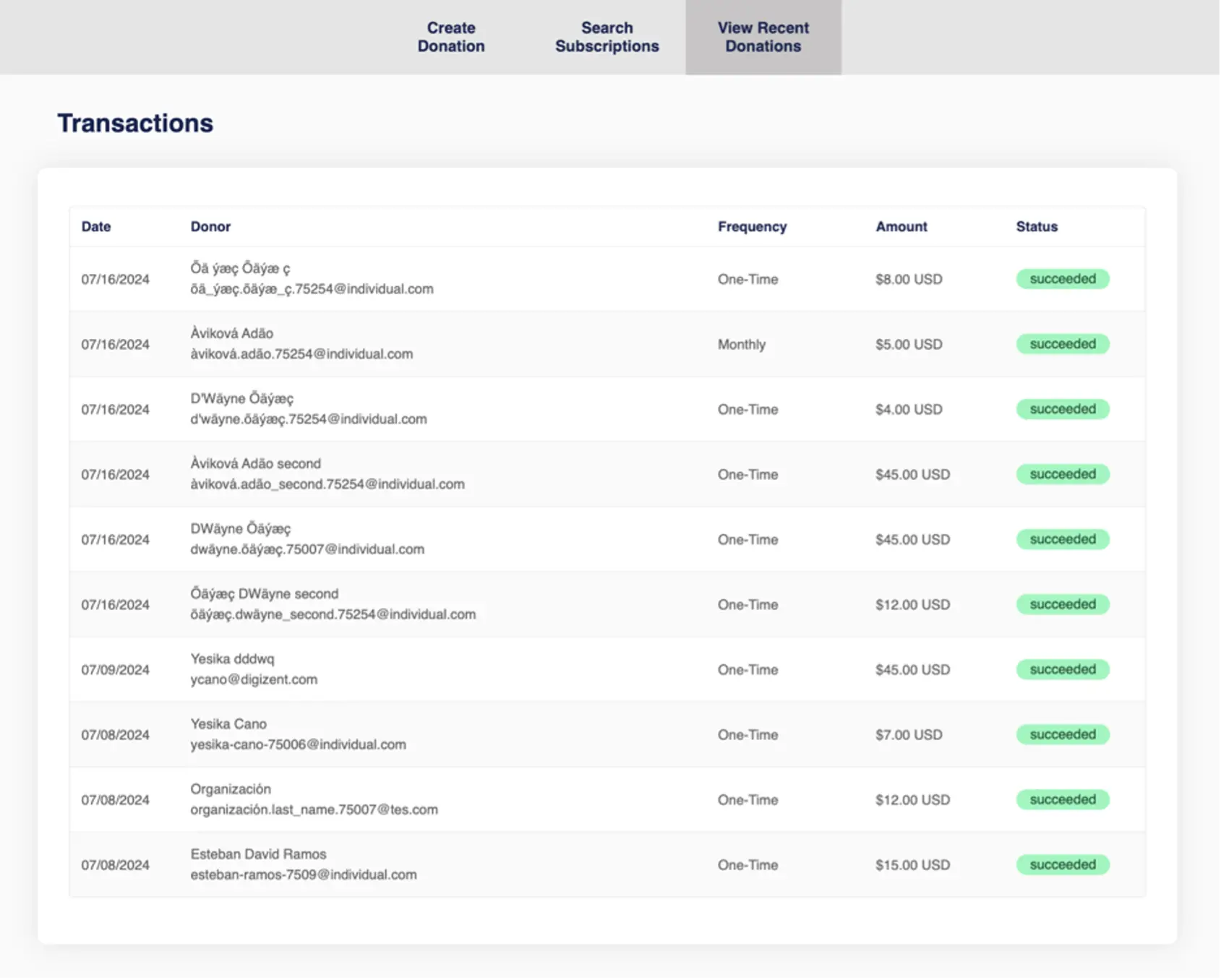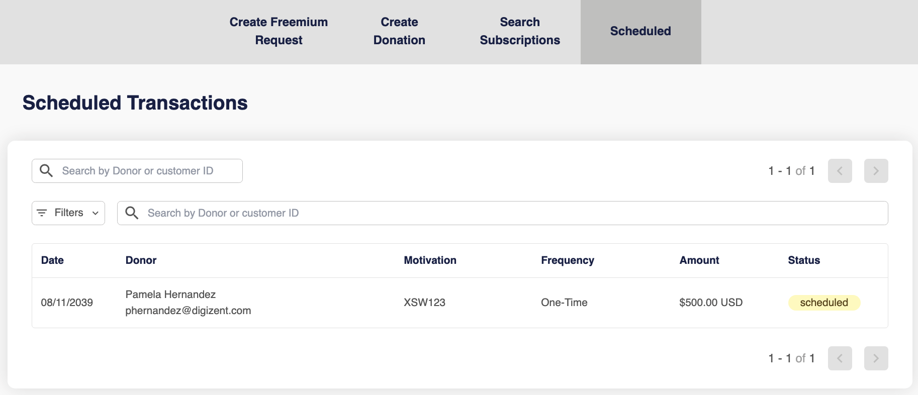 - Search Subscriptions — look up and manage recurring donor accounts.