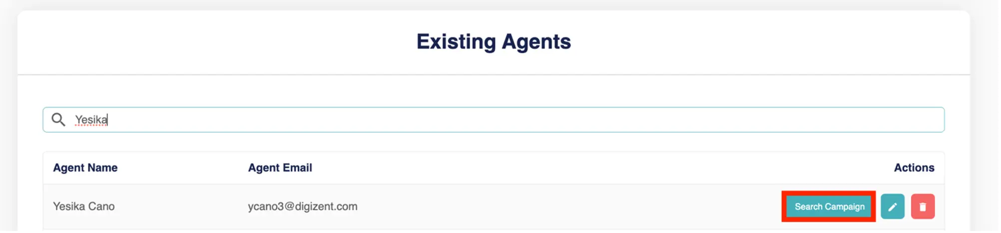 “Existing Agent” section and click on “Search Campaign.”