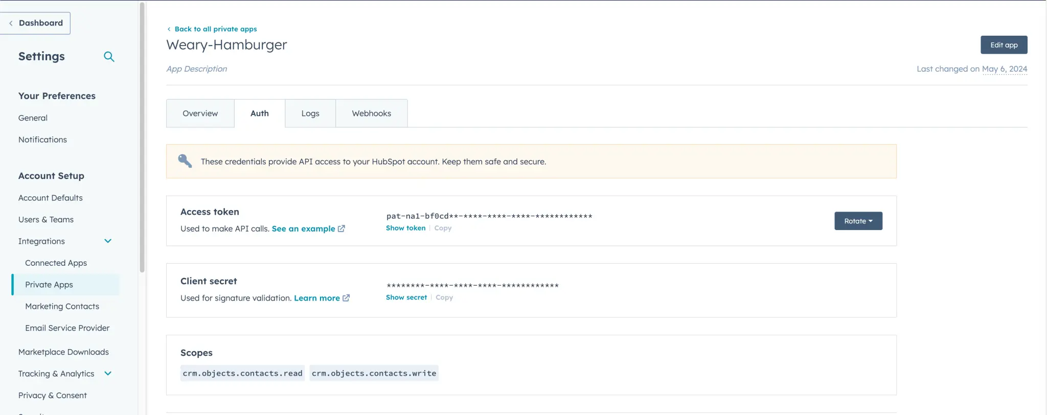 Manage Integrations Options