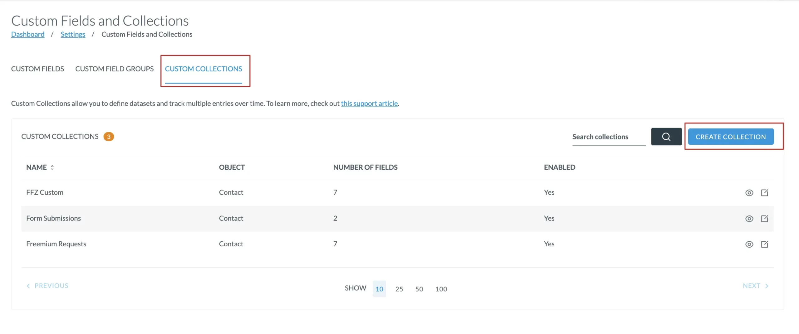 - You can create and edit collections from Custom Collections.
