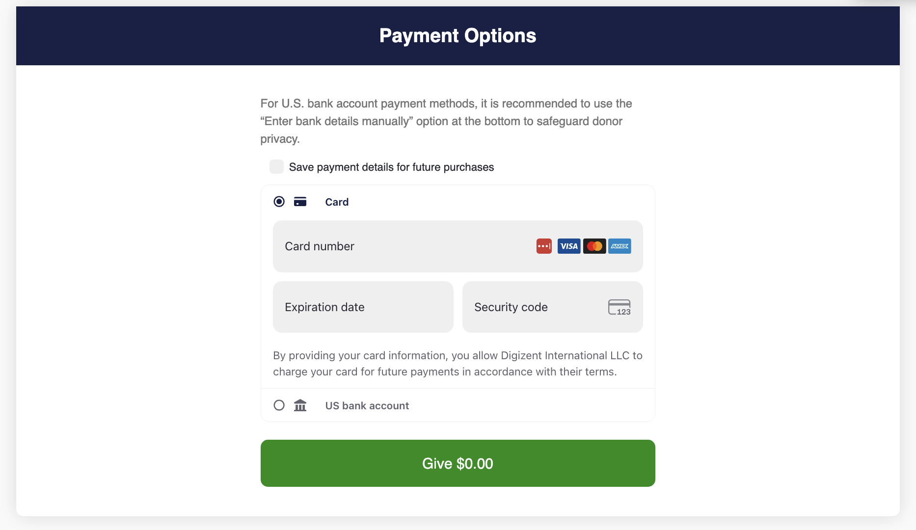 The donor self-service portal is a secure page that lets your donors view their giving history and manage their recurring gifts.