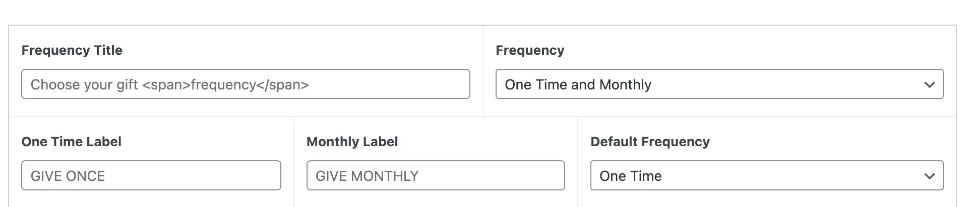 You can choose from three frequency options for items in your gift catalog: