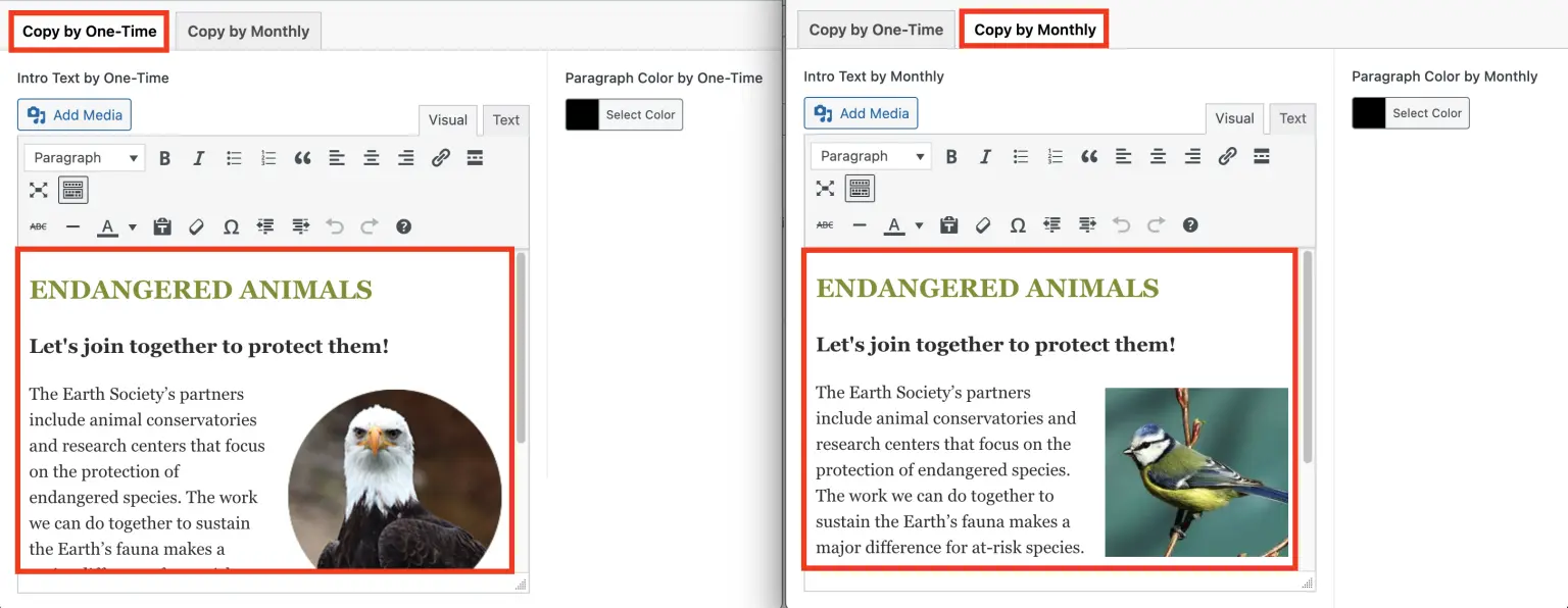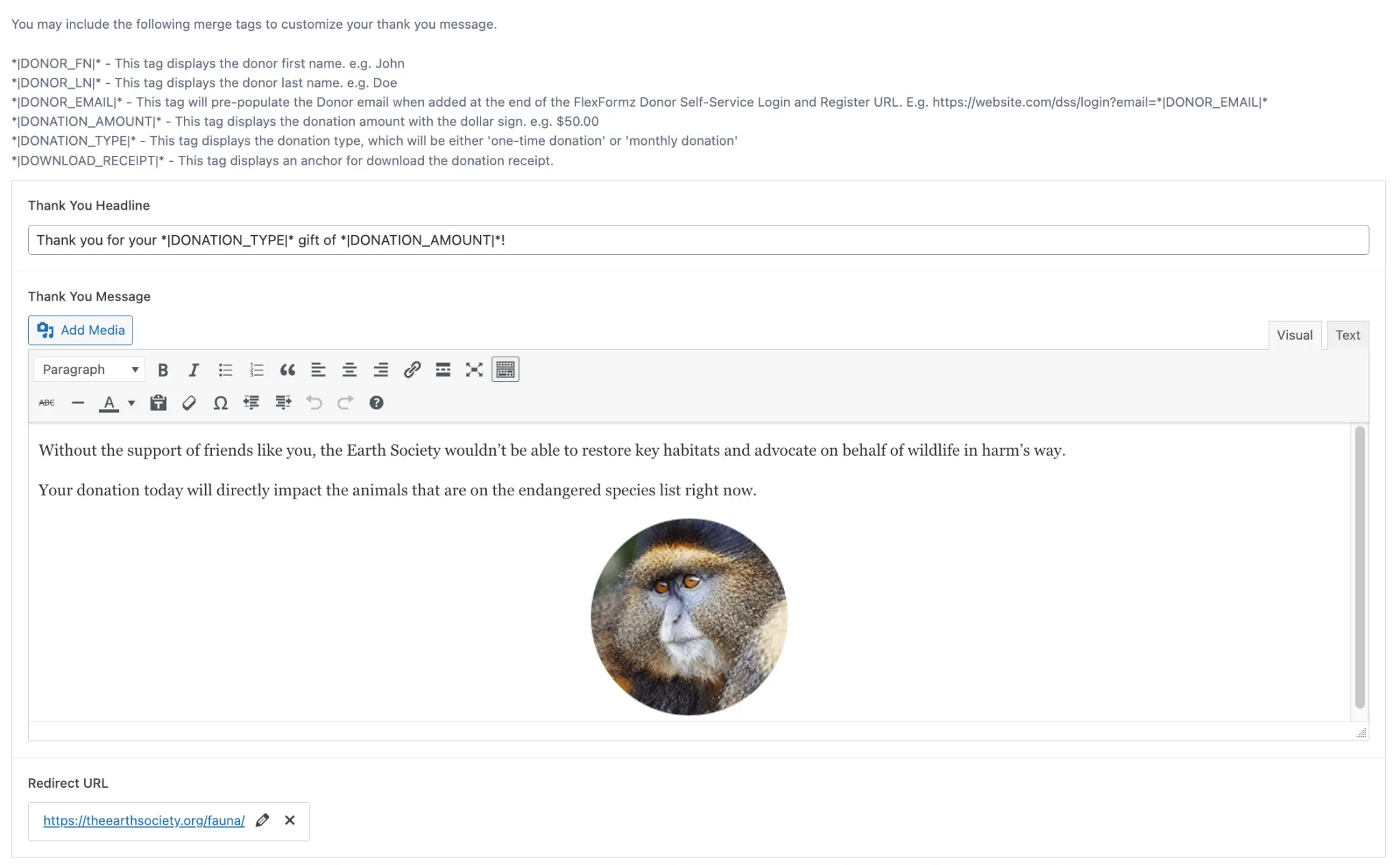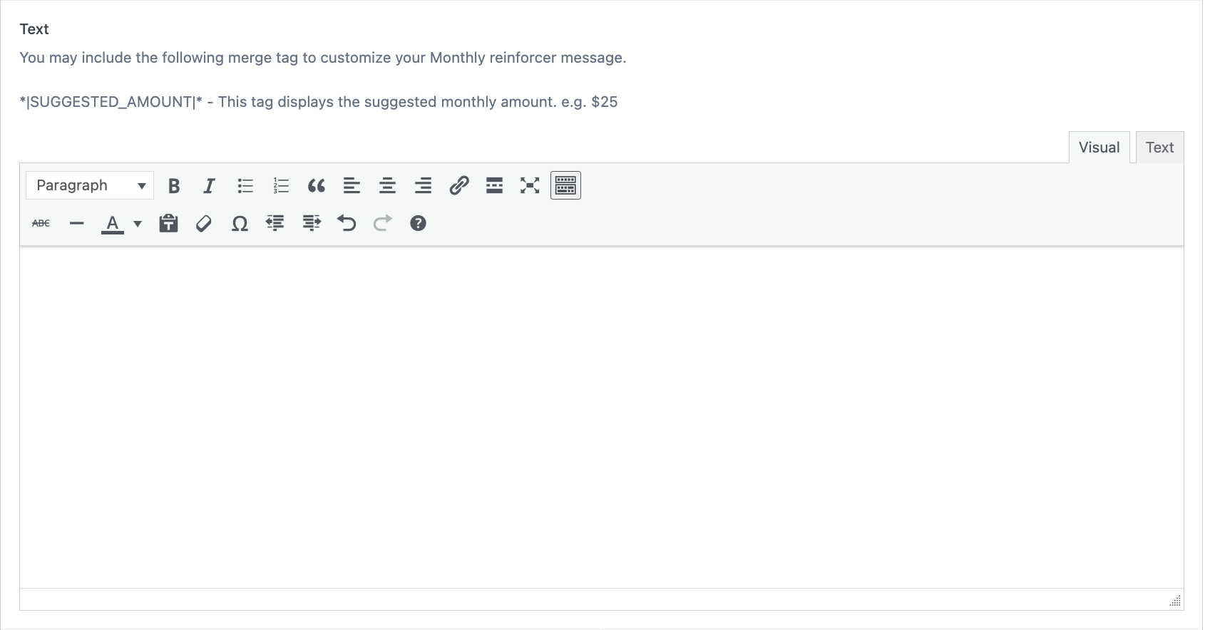 - When customizing the text, you can include the merge tag *|SUGGESTED_AMOUNT|*. This tag displays the suggested monthly amount.