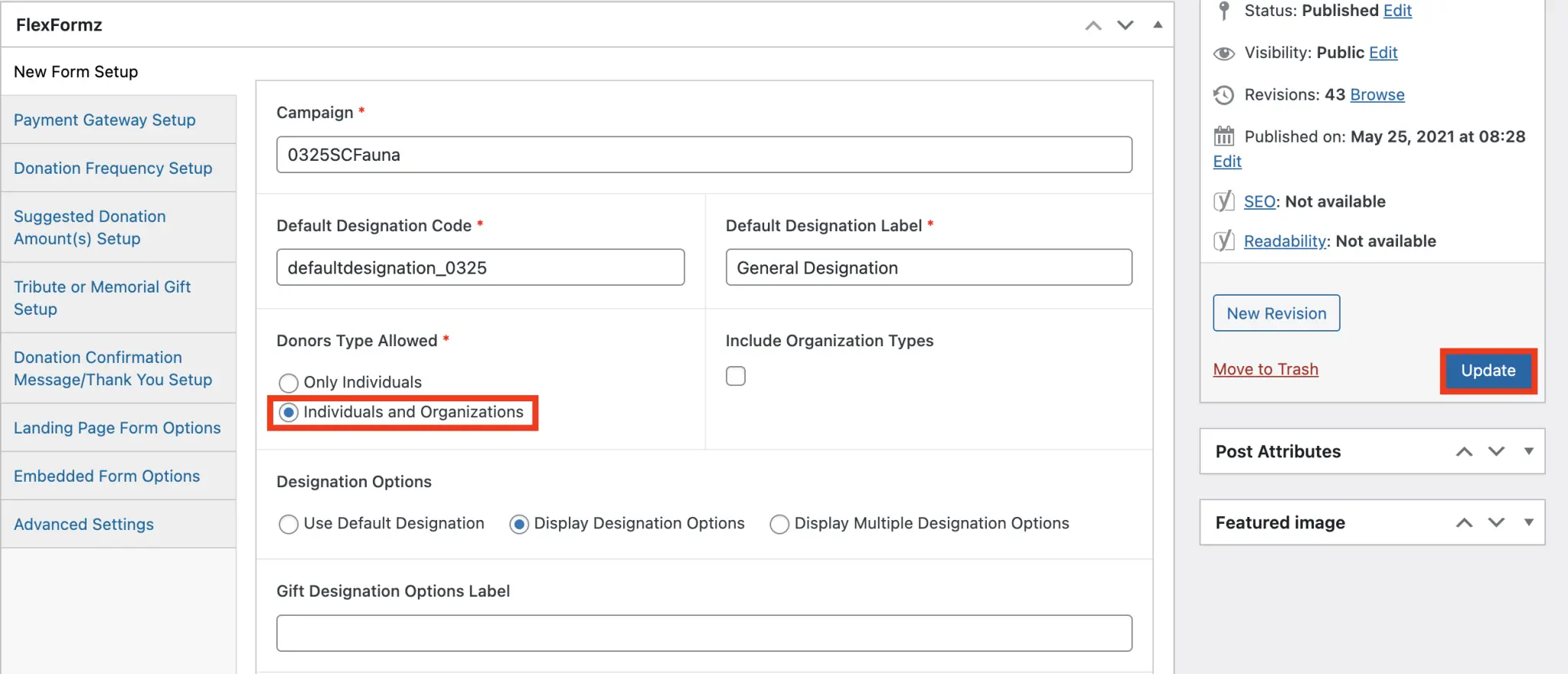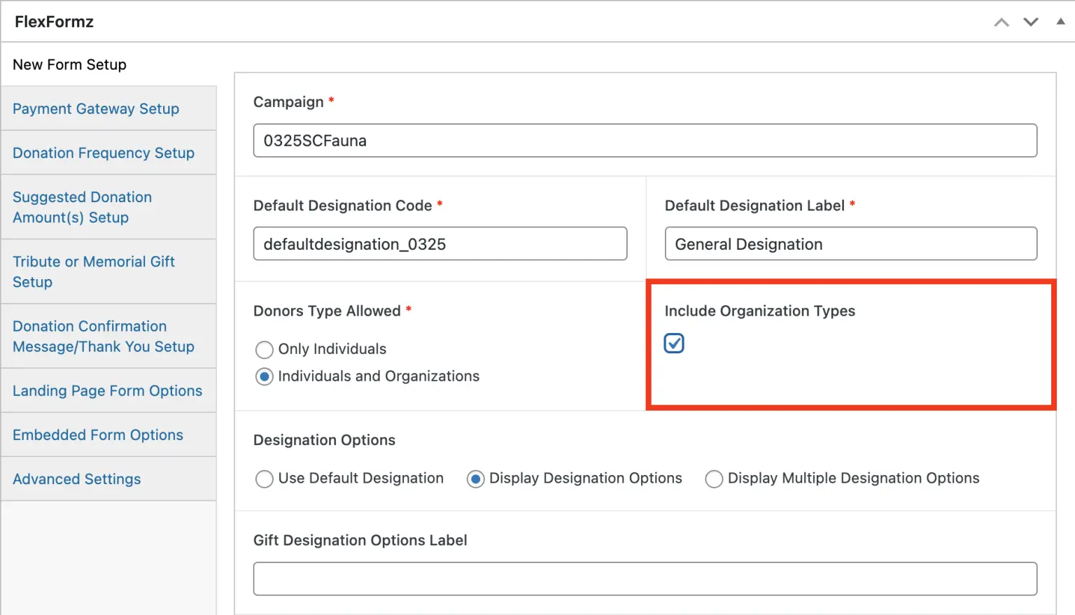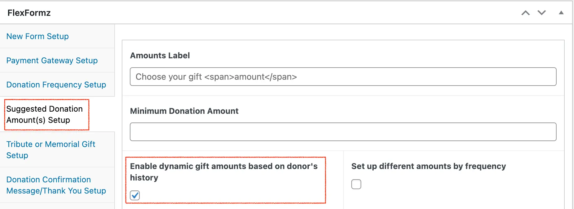 Visit the Suggested Donation Amount(s) Setup section to enable or disable the Dynamic Gift Arrays per form.