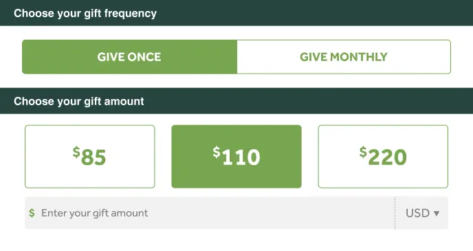 Gift arrays are almost entirely unique to the nonprofit world—and they’re a great opportunity to offer your donor suggested gift amounts.