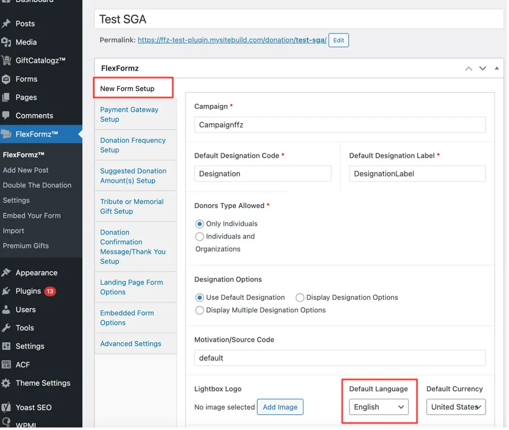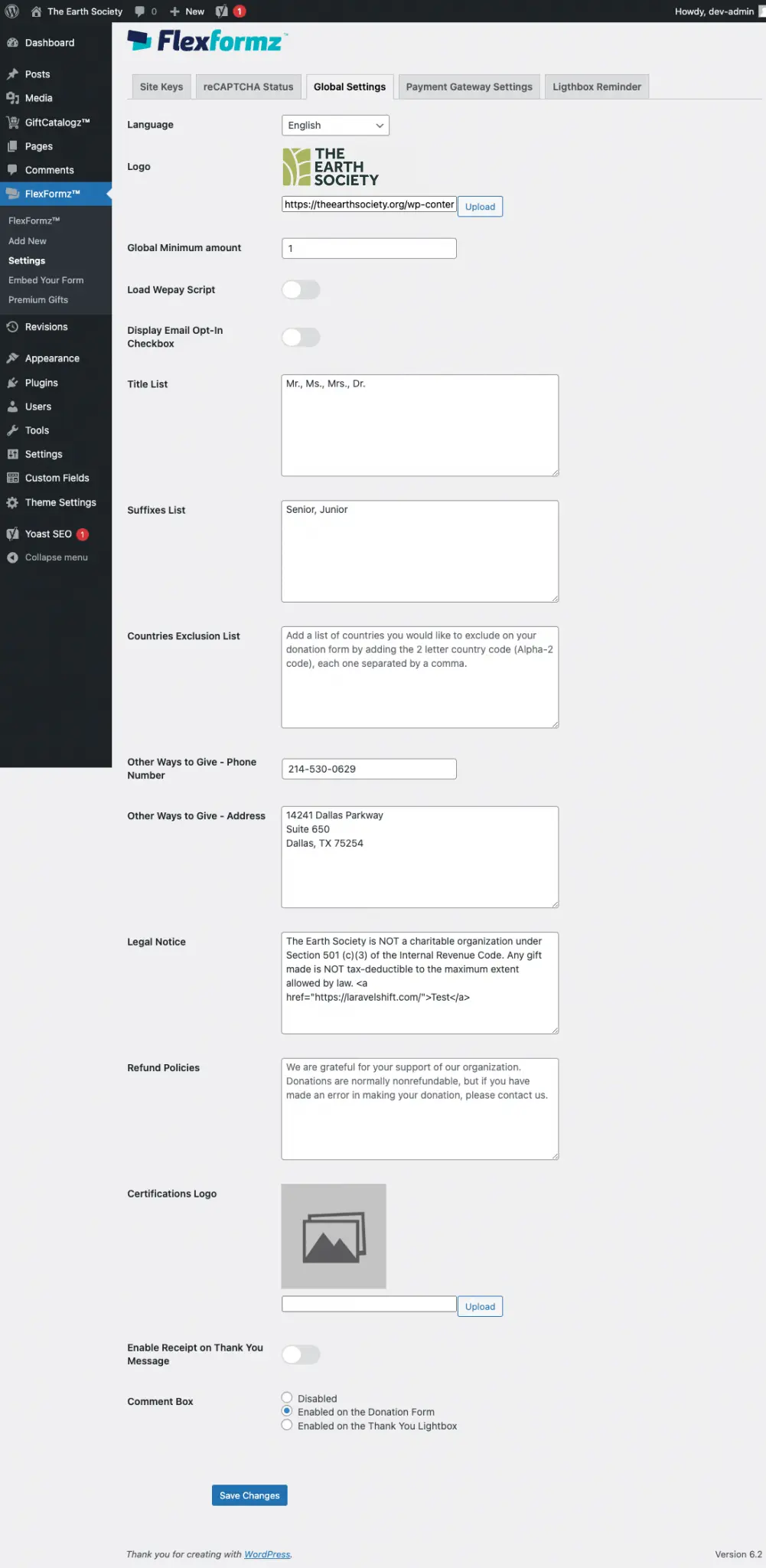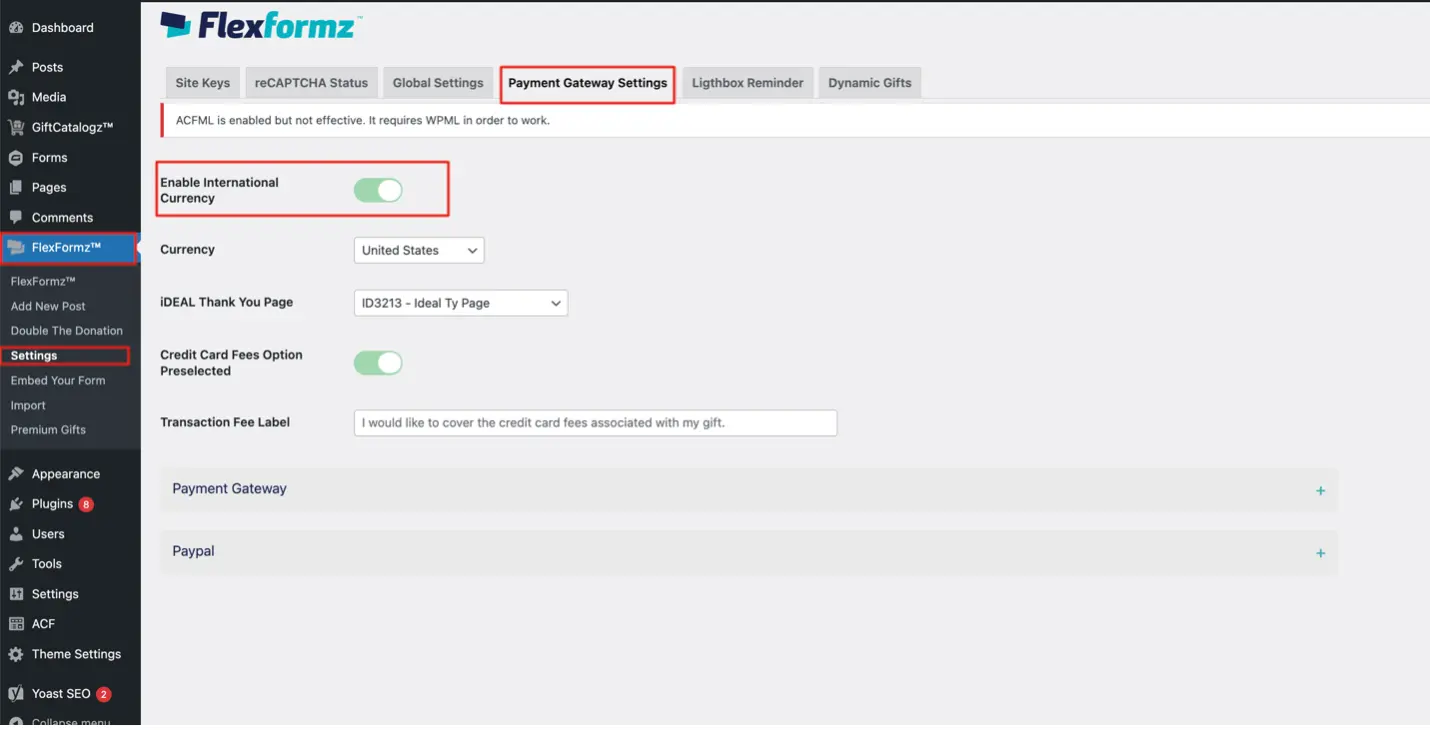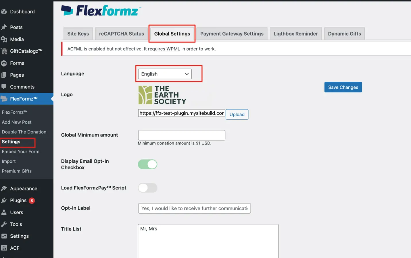 FlexFormz WordPress Global Settings