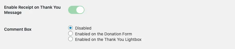 Enable Receipt on Thank You Message