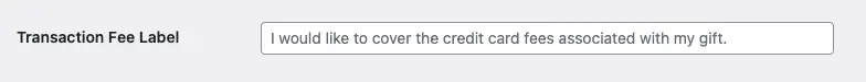 If you want to customize the label, insert your desired copy on the Transaction Fee Label.