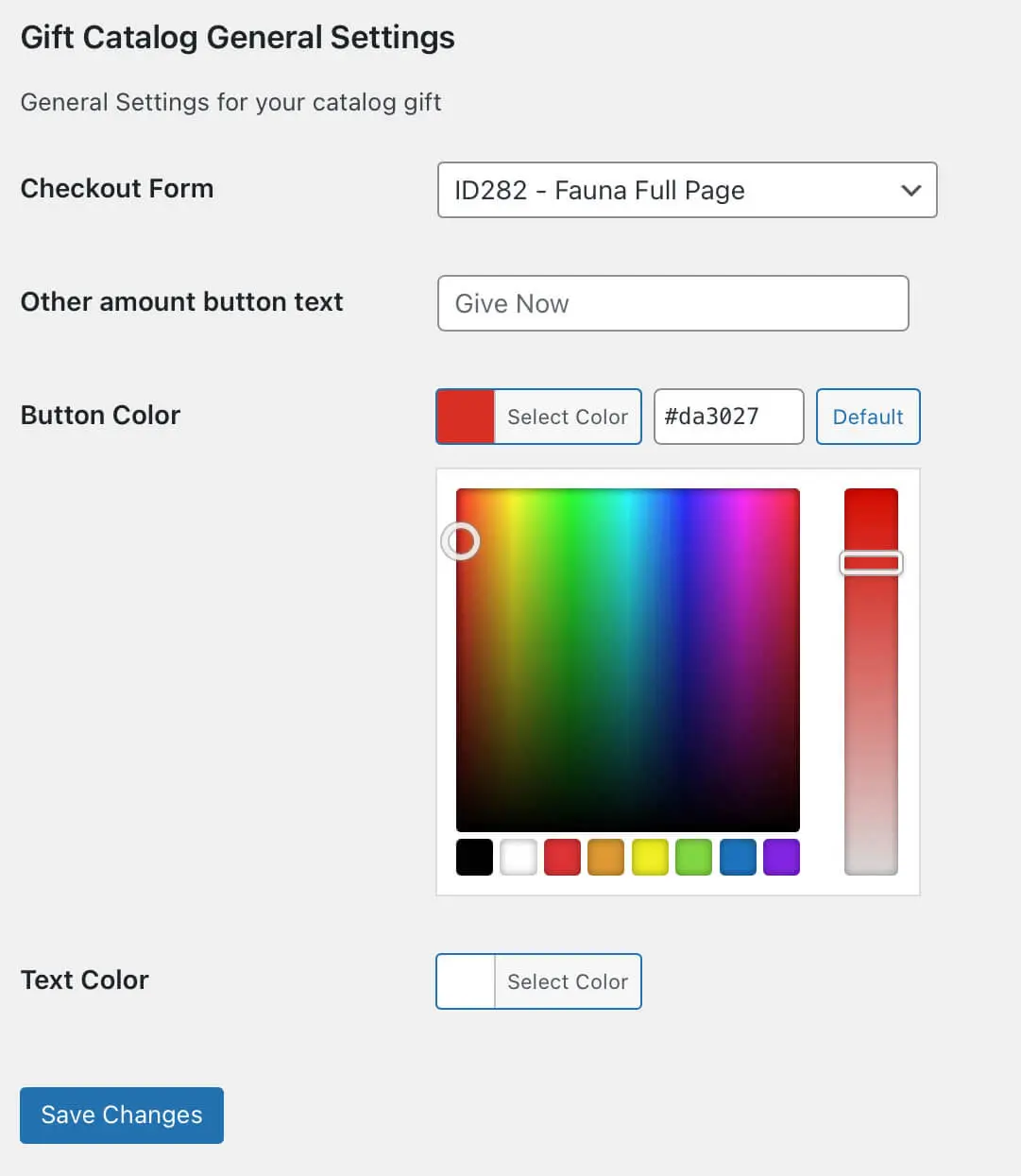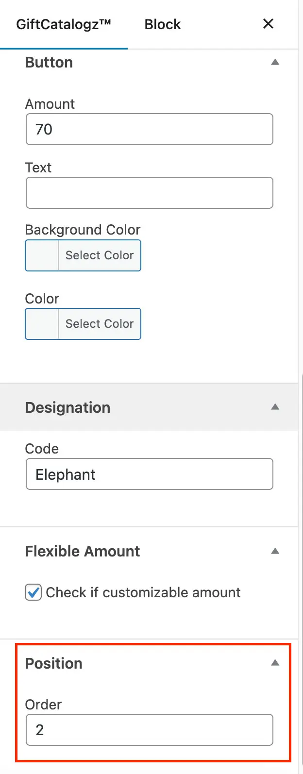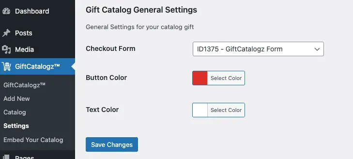 Inside each GiftCatalogz you can choose colors for the text and background of the button. |