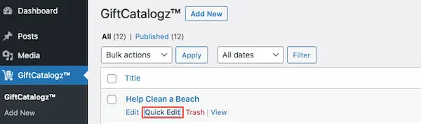 When creating an item in the Add Post section of GiftCatalogz, you’ll see a new “Event” section. You can choose from four item types: