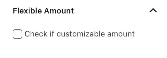 If the item does not have a default amount and you want to show only the button that displays the open amount input, then you need to clear the amount of the post item and the checkbox can be checked or unchecked.