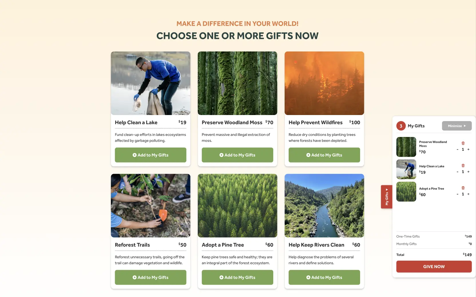 When a donor adds this item to their cart, the gift will be a one-time gift only.