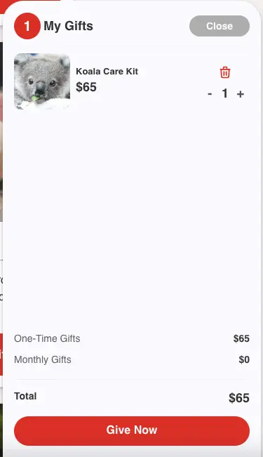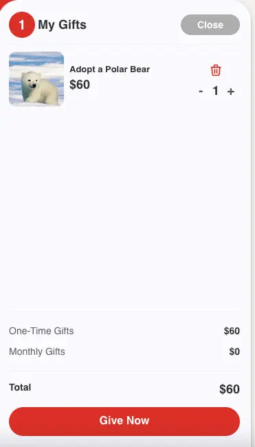 The donors will always see a minimized version of their cart when there are items in it.