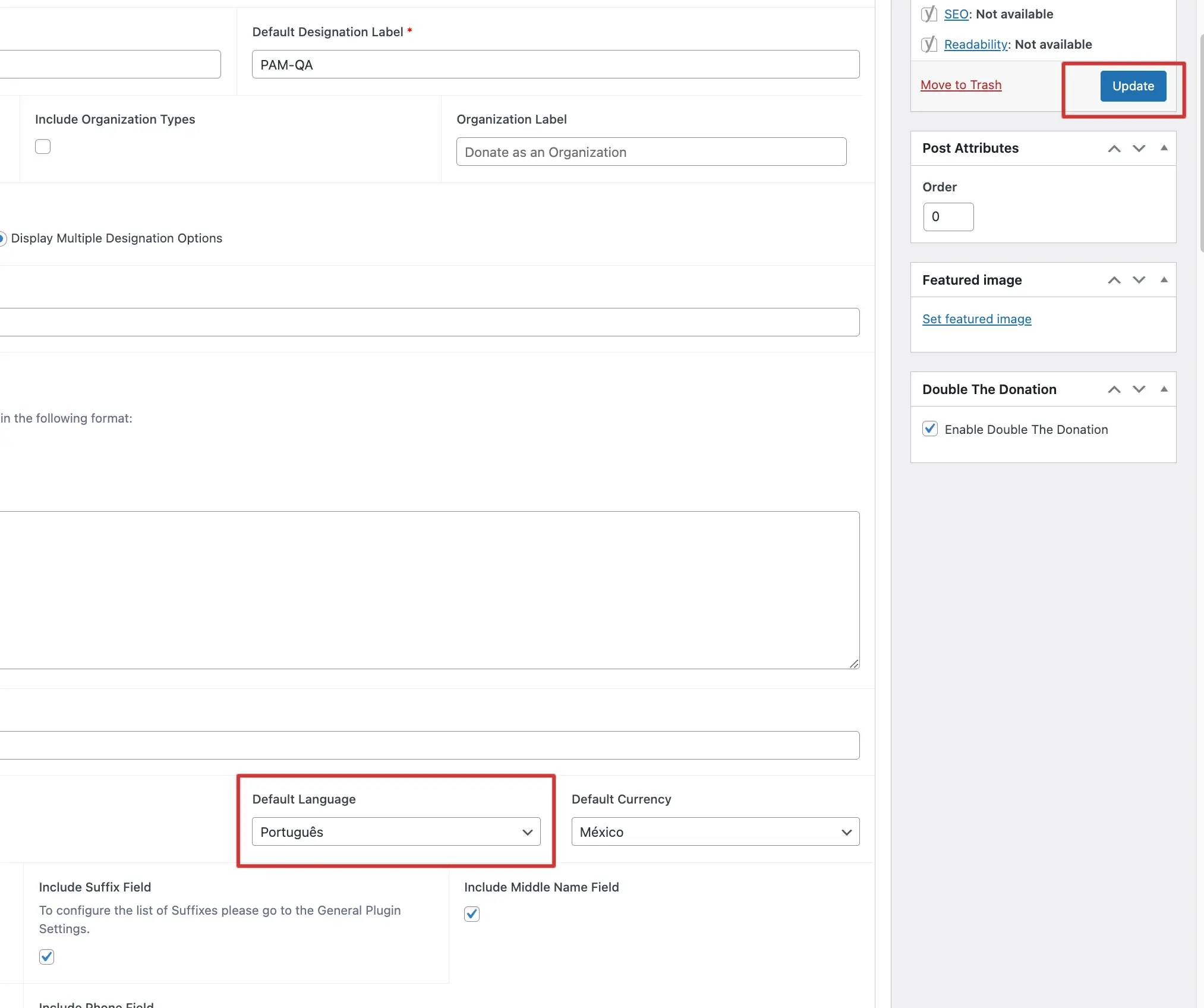 Find the section Suggested Donation Amount(s) Setup and you will see a new field called