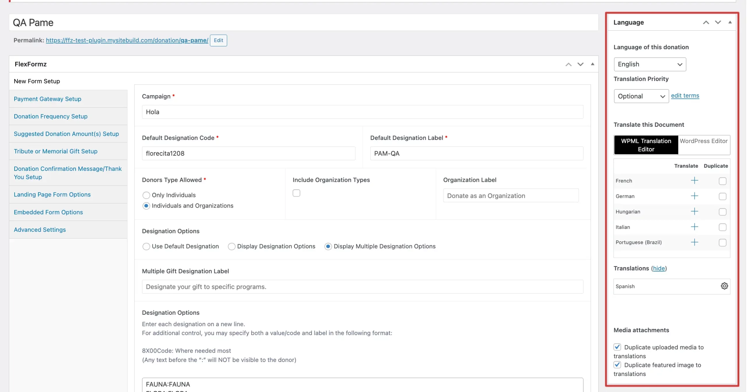 - Copied and Pasted the FlexFormz API key into the FlexFormz plugin Payment Settings