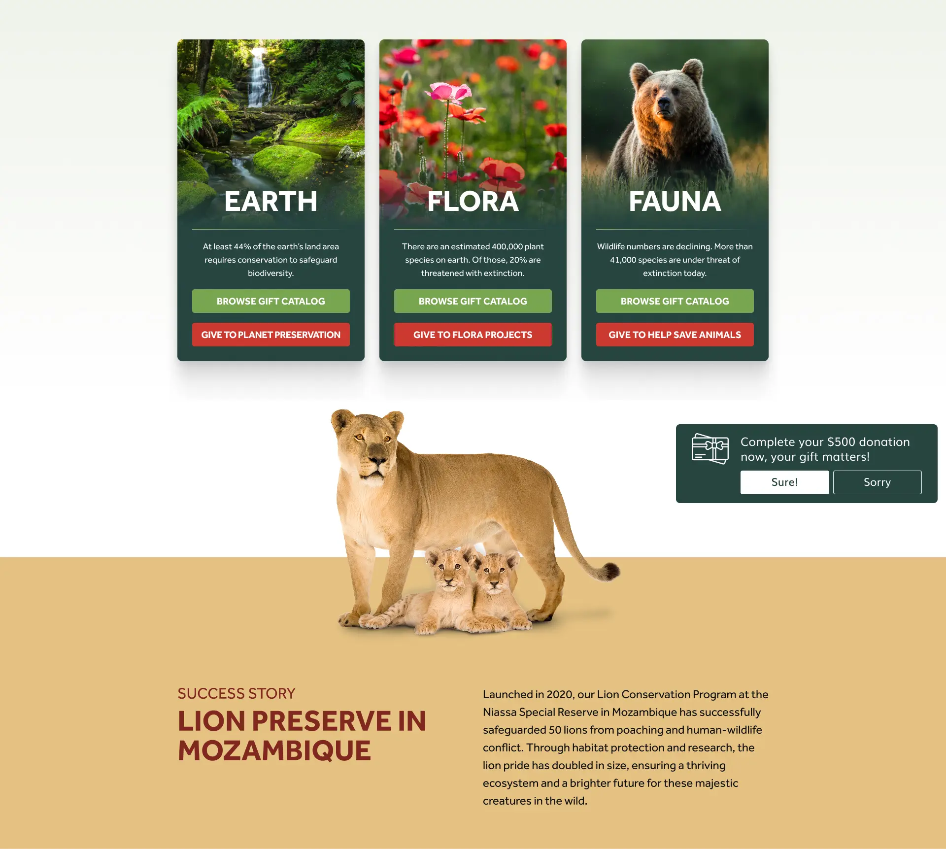 A visual reminder for donors that intended to donate but did not finish their transaction. The donor can easily restart the donation process again by clicking on the Lightbox.