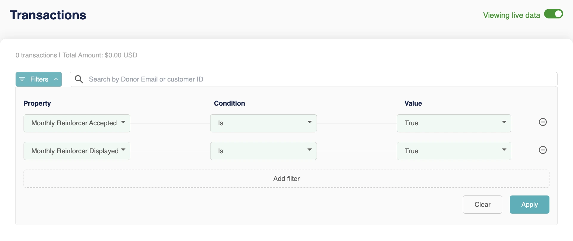 Tracking & Reporting When this option of Monthly Reinforcer is activated, its performance can be tracked in Dashboard > Transactions using the filters: