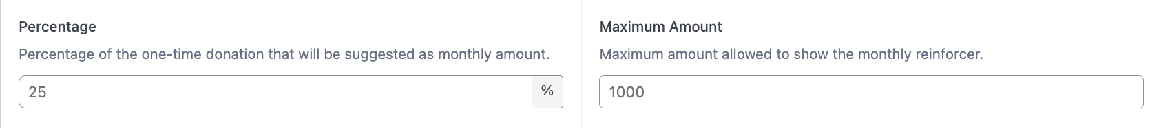 - By default, the suggested monthly donation is 25% of the one-time donation amount, with a maximum cap of $1,000.