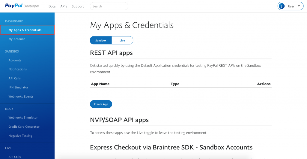 1. Login into the developers PayPal site: https://developer.paypal.com/