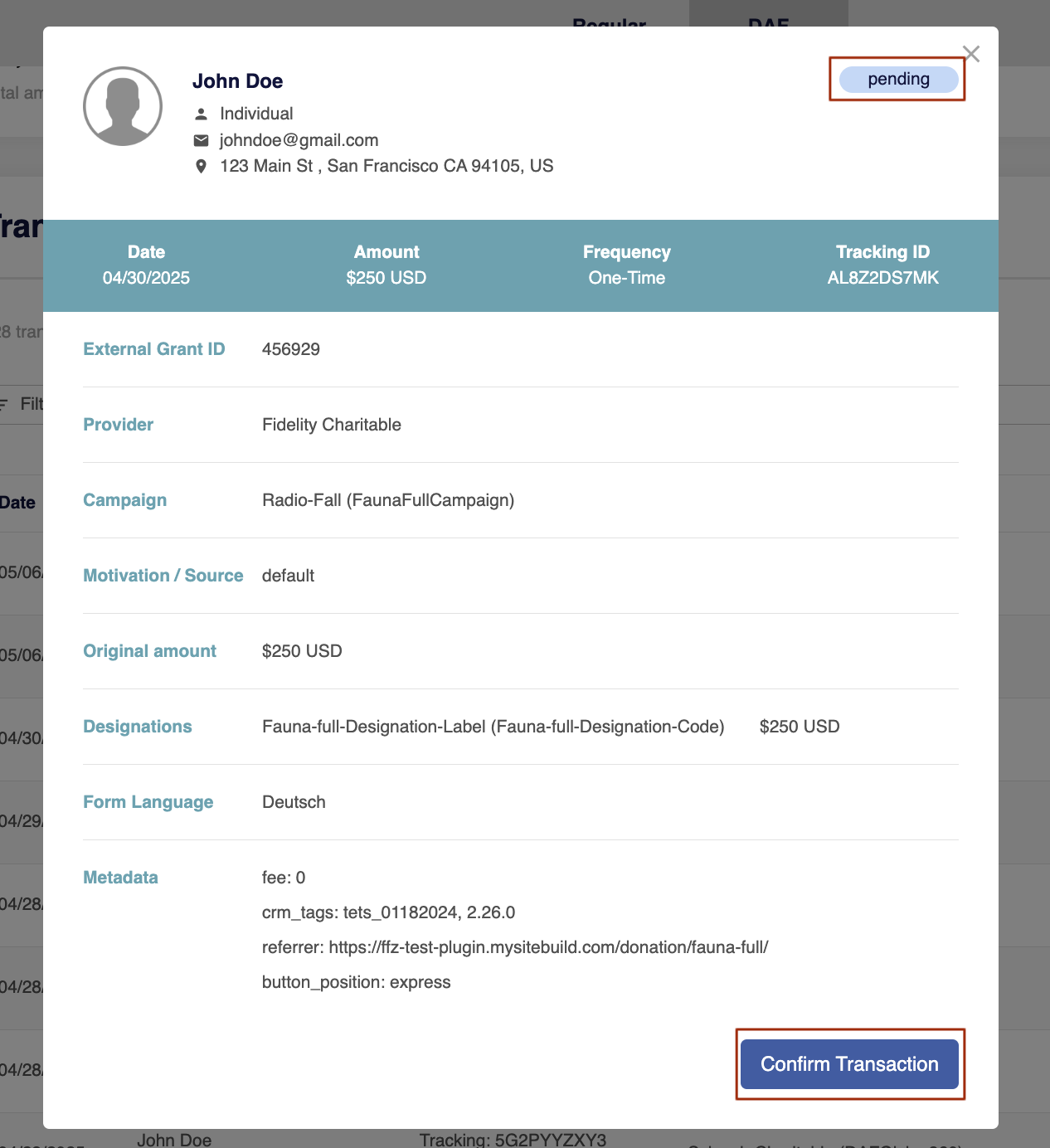 - They will remain in pending status until you manually confirm them, after the Chariot team sends the DAF contribution information to your email.