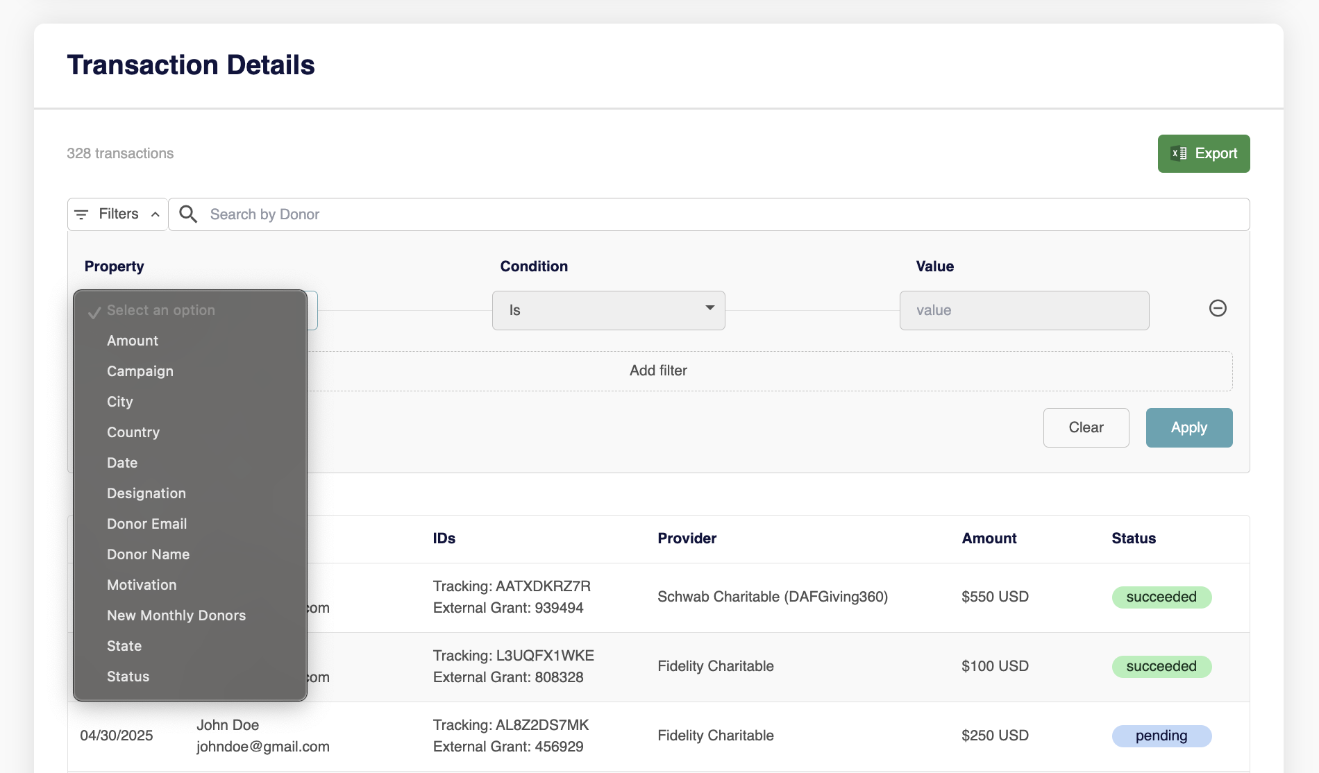 You can also use detailed filters to refine the donation table view