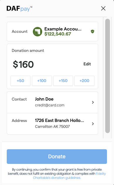 For the express button, simply clicking it will immediately take the donor to the DAF Pay flow.